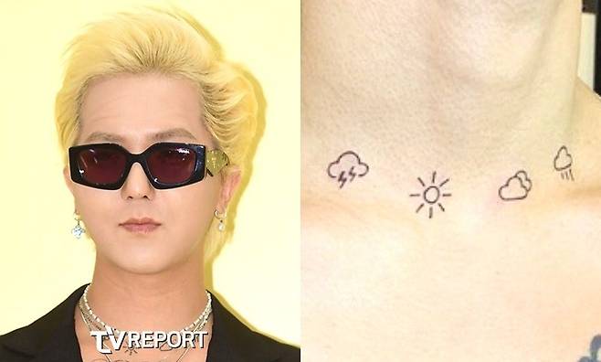 래퍼 송민호는 지난 2019년 번개, 맑음, 흐림, 비를 의미하는 날씨 타투를 새겨 화제를 모은 바 있다.