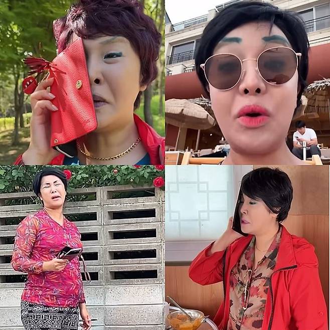 한껏 성난 갈매기 눈썹과 입에 반틈만 발려진 립스틱, 시간이 흘러 파래진 아이라인 문신까지. 유튜버 랄랄이 제대로 현실고증을 했다. 임신 중임에도 불구하고 오히려 자신의 체형을 살려 실감 나는 아줌마 분장과 연기로 구독을 유발한다.