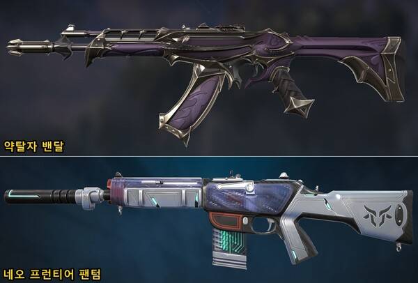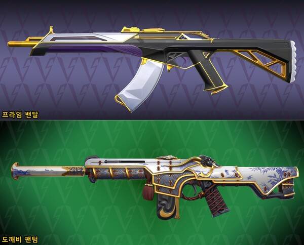 하이라이트 스킨은 거의 모든 바이 라운드에서 활용되는 '밴달'과 '팬텀' 스킨이다. 줄여서 '밴팬'이라고 부르는 두 종류의 총기는 발로란트에서 가장 많이 사용되는 총기다. 유저들의 워너비 밴팬 스킨 베스트5를 선정해보고자 한다.