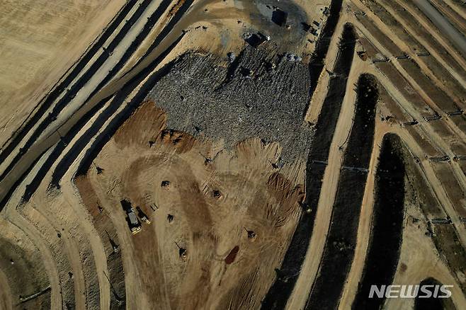 [브라질리아=AP/뉴시스] 4일(현지시각) 브라질 수도 브라질리아의 한 쓰레기 매립지에서 트랙터와 트럭들이 쓰레기를 매립하고 있다. 브라질 연방정부는 오는 8월까지 주와 각 도시는 쓰레기 수거가 환경에 미치는 영향을 줄여야 한다고 밝혔다. 2024.06.05.