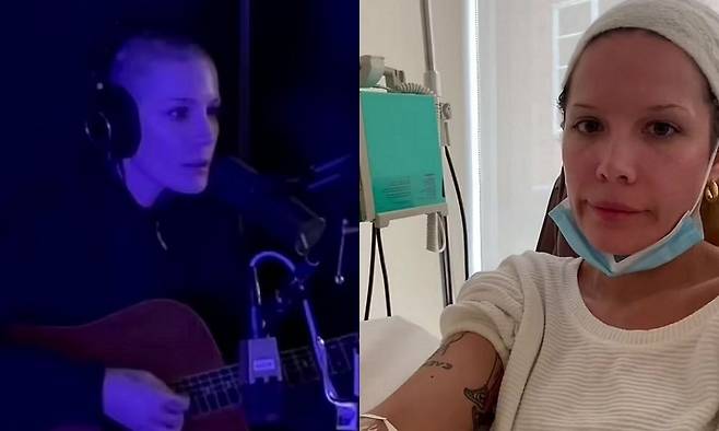 4일(현지 시간) 할시(Halsey·29)는 자신의 소셜네트워크서비스에 근황이 담긴 여러 개의 영상을 공유했다. 영상 속 할시는 "할머니가 된 기분이다. 2년만 더 아프면 된다"라며 아파 보이는 다리를 주물렀다. 이외에도 그는 항암 치료를 위해 삭발한 상태로 치료를 받는 모습과 신곡 'The End'를 기타로 연주하는 모습을 공개했다. 할시는 치료 중 촬영한 여러 영상을 편집했으며 눈물을 흘리는 모습도 담겨 있었다.