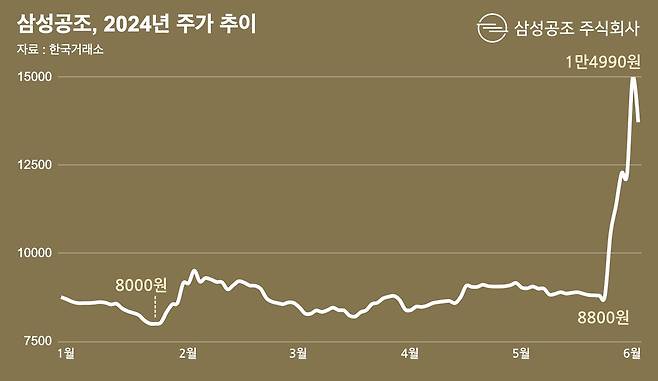 삼성공조 주가는 지난달 28일 종가 8800원에서 전날 종가 1만4990원까지 70.3%(6190원) 급등했다.