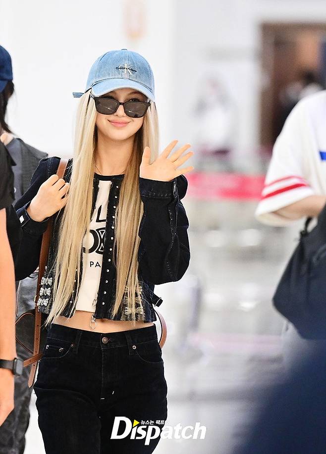 다니엘은 선글라스와 모자, 블랙진으로 캐주얼한 공항패션을 연출했다. 요정을 연상케 하는 비주얼이 돋보였다.