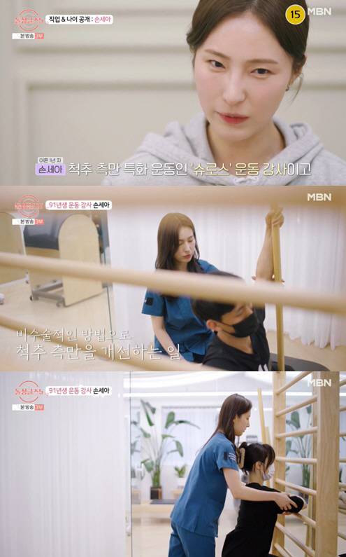 다음으로 손세아가 정보를 공개했다. 나이는 91년생이고, 직업은 척추 측만 특화 운동인 '슈로스' 운동 강사였다.