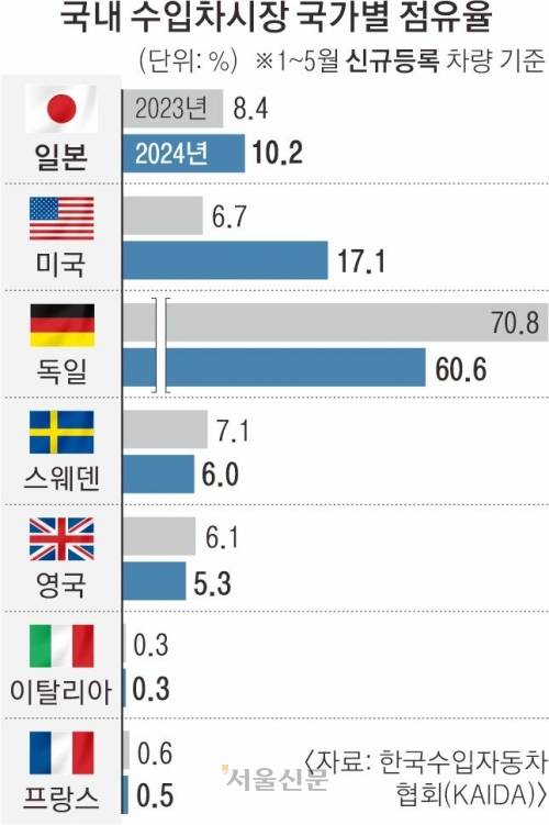 ‘노노 재팬’ 5년 만에… 일본차, 국내 수입차 비중 10% 넘었다