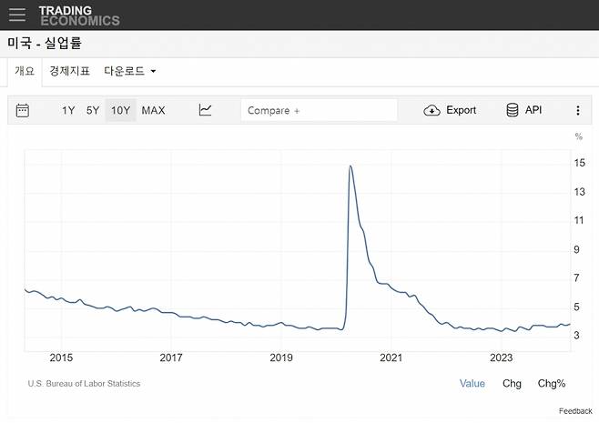 미국의 실업률은 1960년대 후반 27개월 연속 4% 미만이었다. 하지만 그 이전 1950년대 초에 한 달 더 긴 28개월 이상 실업률이 4% 이하를 기록했다. 앨런은 "특히 낮은 실업률은 기업이 근로자를 고용하기가 더 어려워지고 기존 직원의 생산성을 높이는 데 더 집중하게 되면서 종종 생산성 향상을 가져왔다"며 "우리 시대의 AI 성장을 고려할 때 이는 앞으로 몇 년 동안 경제 성장에 어느 정도 상승 가능성이 있음을 시사한다"고 말했다.