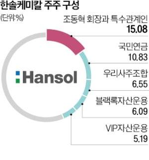 하지만 조 회장 지분 전체를 넘겨받더라도 경영권이 안정적인 상황은 아니다. 2대 주주인 국민연금(지분율 10.83%)과의 차이가 근소한 데다 블랙록자산운용(6.09%), VIP자산운용(5.19%)도 주요 주주로 있다. 이들 지분을 모두 합치면 대주주 지분율을 훌쩍 넘어선다. 한솔케미칼은 과거 두 차례 외부에 최대주주 지위를 넘긴 적이 있다. 2015년엔 KB자산운용이, 2019년엔 국민연금이 최대주주로 올라섰다.