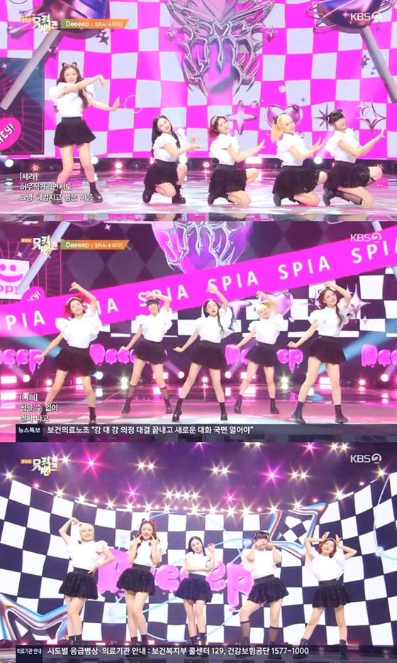 수피아는 7일 방송된 KBS 2TV '뮤직뱅크'에서 신곡 'Deeeep'의 무대를 꾸몄다. 수피아는 블랙 앤 화이트 컬러를 매치, 사랑스러운 소녀의 모습으로 무대에 올라 국내외 팬들의 마음을 사로잡았다.