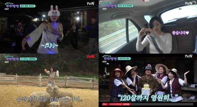 여행 둘째 날, 운전대에서 벗어난 안유진은 한층 여유로운 바이브로 여행을 즐겼다. 안유진은 직접 검색한 근처 맛집으로 멤버들을 안내했고, 폭우 속에 운전대를 잡은 이은지를 보며 “생각보다 좋다. 안정감이 든다”고 응원하며 초보 운전자로서 불안한 심경을 폭풍 공감했다. 식사 후에는 나영석 PD가 추천한 양떼 목장에서 아드레날린을 한껏 폭발시켰다. '양띠'임을 강조하며 양떼 목장에 입성한 안유진은 동물들과 교감하며 즐거운 시간을 보냈다.