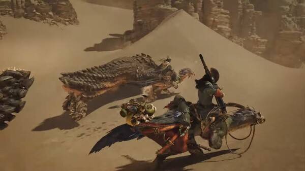 이 때 플레이어가 탈것 위에서 대검을 휘두르거나 헤비보우건을 발사하는 마상 전투 장면을 확인할 수 있다. 전작 월드나 라이즈보다 한층 속도감 넘치는 전투 액션이 기대된다.