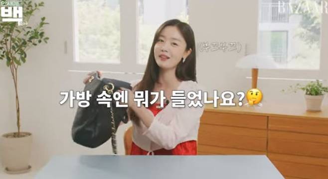 가방 속 아이템 역시 공개했다. 대본, 필통, 비타민, 헤어 제품, 립밤, 거울, 향수, 선글라스, 마사지 롤러를 공개했다.