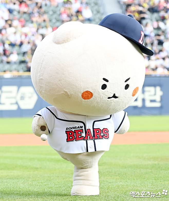 (엑스포츠뉴스 잠실, 김한준 기자) 8일 오후 서울 송파구 잠실야구장에서 열린 '2024 신한 SOL Bank KBO리그' KIA 타이거즈와 두산 베어스의 경기, 경기 전, 캐릭터 망곰이가 시구에 임하고 있다.