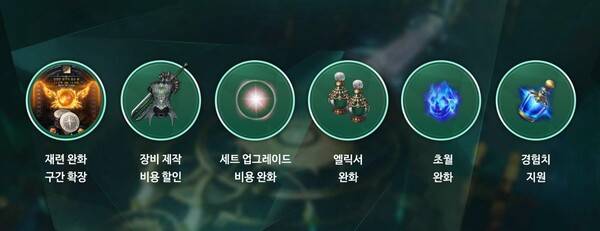 재련 완화 구간 확장, 장비 제작 비용 할인, 경험치 지원 등
