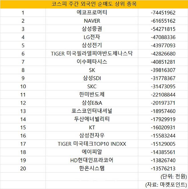 코스피 주간 외국인 순매도 1위 '에코프로머티'