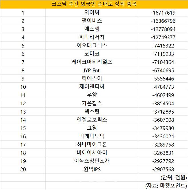 코스닥 주간 외국인 순매도 1위 '와이씨'
