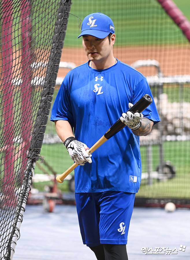 (엑스포츠뉴스 고척, 고아라 기자) 9일 오후 서울 구로구 고척스카이돔에서 열린 '2024 신한 SOL뱅크 KBO리그' 삼성 라이온즈와 키움 히어로즈의 경기, 삼성 박병호가 훈련을 하고 있다.