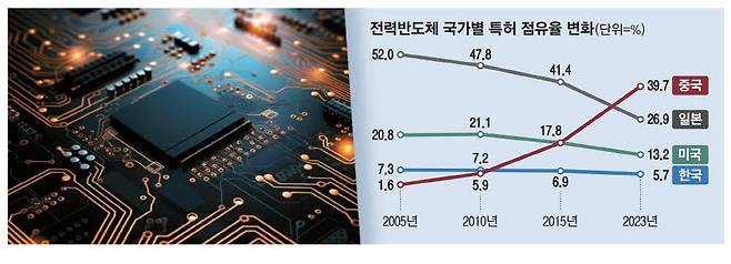 인공지능(AI) 반도체에 이어 산업계에 돌풍을 일으킬 '전력반도체' 분야에서 국내 기업들의 지식재산 경쟁력이 크게 뒤처진다는 조사 결과가 나왔다. 전 세계 톱20 기업에 미국·중국·일본 업체들이 주를 이룬 가운데 한국 기업은 한 곳도 없었다. 전 세계적으로 증가하고 있는 전력반도체 수요에 맞춰 한국 기업들도 시급히 경쟁력을 확보해야 한다는 지적이 나온다. 매일경제신문은 9일 글로벌 특허 분석기업 렉시스넥시스와 공동으로 '전력반도체 분야 지식재산 경쟁력 글로벌 톱20 기업'을 분석해 발표했다. 지식재산 경쟁력은 올해 4월 기준 기업이 출원한 전력반도체 관련 특허를 대상으로 특허자산지수(PAI·Patent Asset Index)를 따져 산출됐다. 전력반도체는 정보나 신호를 처리하고 저장하는 시스템 반도체와 달리 전자기기에 들어오는 전력을 변환·저장·분배·제어하는 장치로 전자제품의 전력 효율을 끌어올릴 수 있다. 모바일 기기 증가, 전기자동차 보급 확대는 물론 AI를 위한 데이터센터가 늘어나면서 수요가 폭발적으로 급증하고 있다. 시장조사기관 야노경제연구소에 따르면 전 세계 전력반도체 시장은 2022년 239억달러(약 32조원)에서 2030년 370억달러(약 50조원)로 성장할 전망이다.