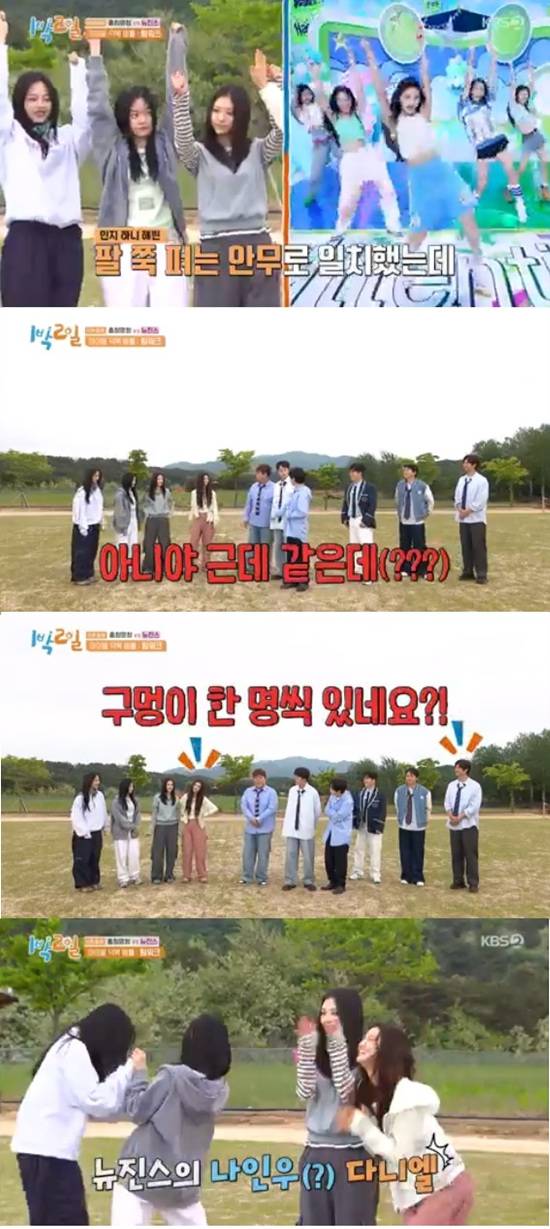 9일 방송된 KBS 2TV '1박 2일 시즌4'에서는 연정훈, 김종민, 문세윤, 딘딘, 나인우, 유선호가 뉴진스와 함께 퇴근을 걸고 게임을 하는 모습이 전파를 탔다.