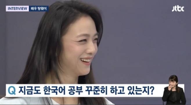 이에 탕웨이는 "당시 저는 한국어를 배우는 과정이 너무 즐거웠고, 일하는 동안 언어를 배우고 그 언어의 문화와 그 언어를 사용하는 사람들의 성격, 습관, 분위기를 알아간다는 점이 마음에 들었어요. 지금은 한국어를 배울 수 있는 환경이 필요해서, 남편이 저에게 한국어를 많이 쓰도록 독려하고 있다"라고 아직 한국어를 공부하고 있음을 전했다.