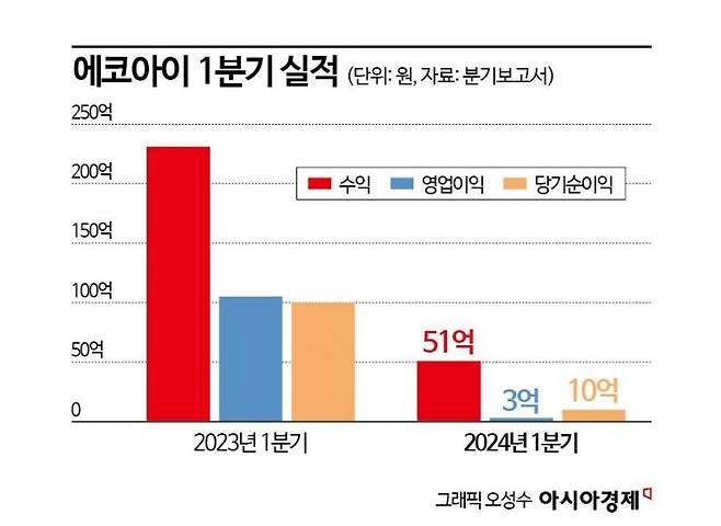 에코아이, 올해 들어 40% 하락…1분기 이익 급감
