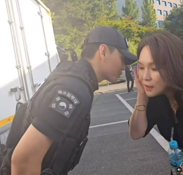 영상에는 뷔가 이지영에게 깍듯하게 인사하는 모습이 담겼다. 뷔는 이지영을 향해 다가가 "저 방탄소년단 뷔라고 합니다. 행사에 저희 군사경찰이 지금 순찰 돌고 있어가지고 선배님 보려고 왔습니다"라고 인사했다. 이에 이지영은 "우와 방탄소년단"이라고 놀라며 "너무 멋있으세요. 제복 입으시니까 더 멋있으신데요"라며 반가워 했다.