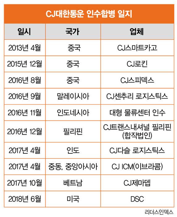 CJ ENM이 설립되던 2011년은 CJ그룹의 한 축인 대한통운을 인수한 해이기도 하다. 대한통운의 인수 역사는 1968년으로 거슬러 올라간다. 1930년 설립된 대한통운은 1968년 동아그룹 계열사로 편입됐으나 동아건설의 부도로 법정관리를 받는 신세가 되기도 했다. 1983년 동아건설과 함께 리비아 대수로 공사에 컨소시엄으로 참여했지만 동아건설의 부도로 리비아 정부의 대수로 공사 중단에 따른 손해배상금 요구 등 위기를 맞은 것.
