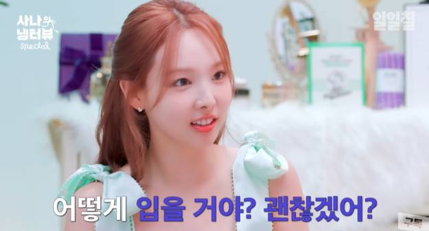 사나는 "어느 정도로 가냐. 나 그거부터 걱정됐다. 언니는 만약에 회사에서 '제대로 하자'고 하면 제대로 할 것 같다"며 나연의 의상을 걱정했다.