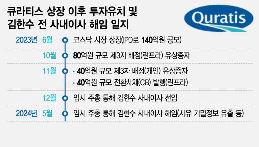 김 전 사내이사는 "앞서 큐라티스의 회계 부정과 관련해 2023년 외부감사에 반영해야 한다고 요청했지만 거부당했다"며 "코스닥에 상장한 지 1년이 채 되지 않은 기업이 임기가 한참 남은 사내이사를 해임하기 위한 단독 안건으로 임시 주총을 개최하는 자체가 매우 드문 사례"라고 말했다.