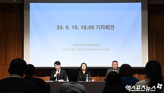 첸과 백현, 시우민(이하 첸백시)의 소속사 INB100는 10일 오후 서울신라호텔 영빈관에서 긴급 기자회견의 개최했다. 현장에는 차가원 회장, 김동준 INB100 대표, 법무법인 린의 이재학 변호사가 참석했다.