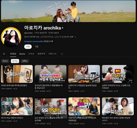 현재 보유한 구독자 수는 31만 명, 530여 개 동영상의 누적 조회 수는 1억 7000만 회에 달한다. 채널 내 최고 인기 영상으로 꼽히는 '와이프 화장 전후'(670만 뷰), '일본인이 절대 못 하는 발음'(460만 뷰) 등의 쇼츠 영상은 각각 수백만 조회 수를 자랑한다. 롱폼 영상 중에서도 '아내의 흑역사를 액자에 걸어봤다'(160만 뷰), '남편이 자기 비빔밥만 돌솥에 만들었다'(150만 뷰) 등 조회 수 100만 회를 훌쩍 넘긴 화제의 영상만 10여 개에 이른다. 이들 부부의 인기 비결은 무엇일까.