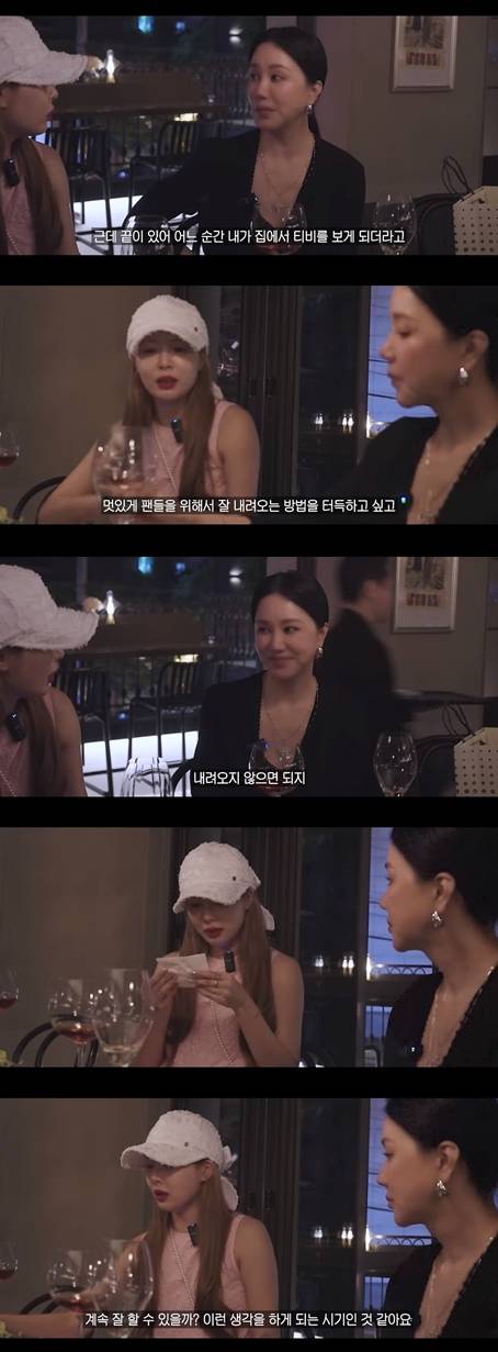 현아는 "왜 눈물이 나지?"라며 울컥하는 모습을 보였고, 이에 엄정화는 "나도 눈물이 나려고 한다. 너가 벌써 그런 생각을 한다니까 좀 놀랍다"라고 말했다.