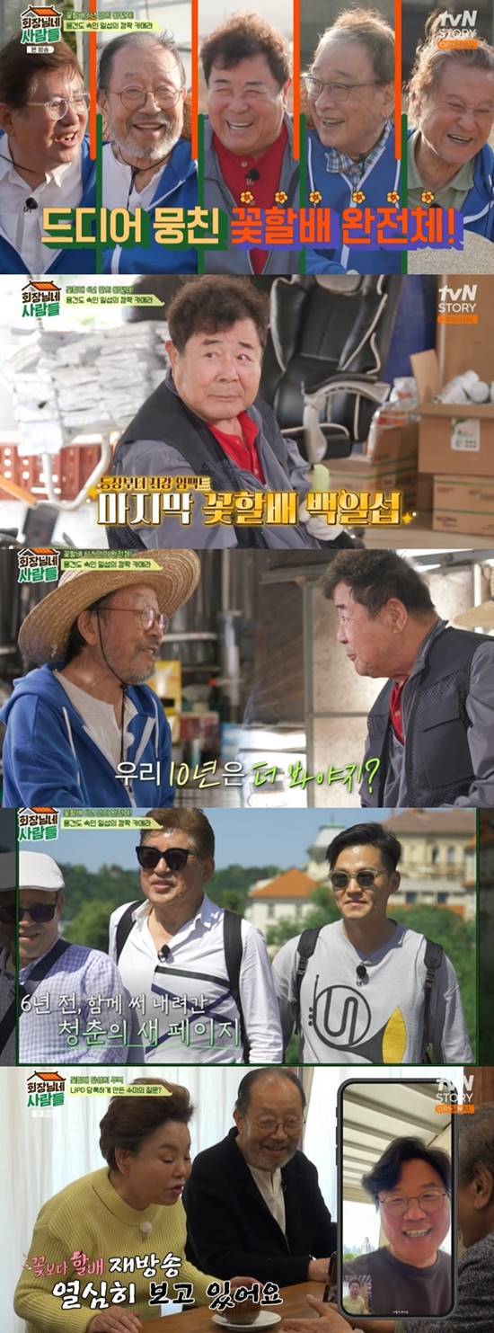 10일 방송된 tvN STORY '회장님네 사람들'에서는 '꽃보다 할배' 멤버들인 이순재, 신구, 박근형이 출연해 반가움을 자아냈다. '회장님네' 고정멤버인 김용건에 더해, 이후 백일섭이 깜짝 등장하며 완전체가 6년 만에 재회했다.