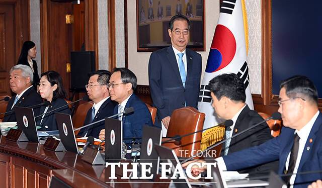 부르튼 입술로 국무회의 모두발언하는 한덕수 국무총리 [TF사진관]