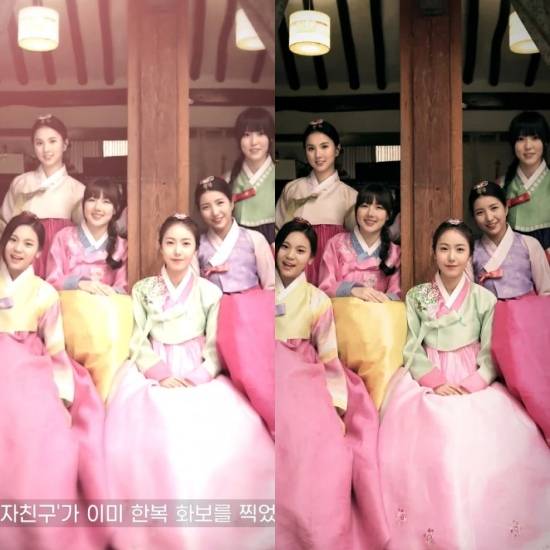 더불어 아일릿의 한복 화보에 대해서 뉴진스 이전에도 한복 화보는 존재했었다며 다른 그룹들의 사진들을 대거 소환했다. 특히 쏘스뮤직 소속이었던 여자친구를 비롯해 트리플에스, 라붐, 프리스틴 등의 사진이 소환됐는데, 이 사진은 모두 원본이 아닌 자체적으로 보정된 사진이었다.