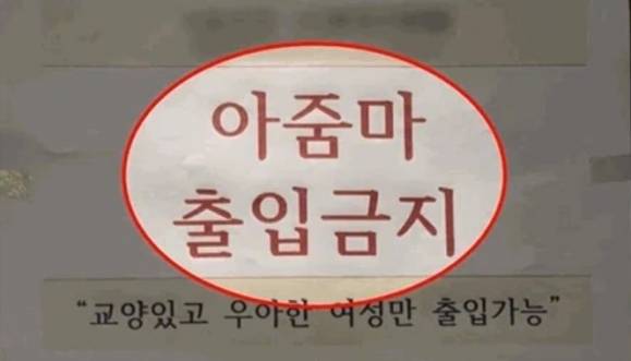 종이에는 빨간 글씨로 '아줌마 출입 금지'라는 문구와 함께 '교양 있고 우아한 여성만 출입가능'이라고 적혔다.