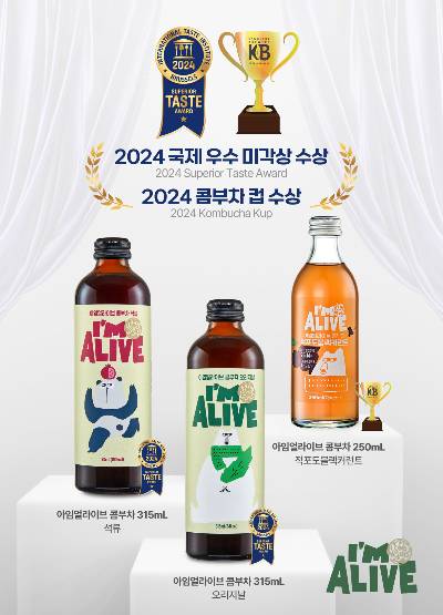 아임 얼라이브 콤부차는 한국식품산업클러스터진흥원의 '국제식품품평회 참가 지원사업'을 통해 이번 품평회에 참가했으며, 오리지널(315ml)과 석류맛(315ml) 2개 제품이 '청량음료-주스 및 무알콜' 부문 수상작으로 선정됐다.