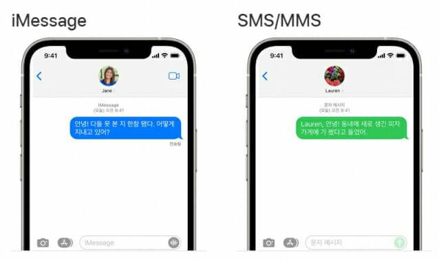안드로이드 진영에서는 GSMA, 각국의 통신사들과 협의해 새로운 문자메시지 기능을 선보여왔지만, 애플은 아이폰이나 맥OS 기기와 연동되는 자체 규격을 고집해왔다. 안드로이드 스마트폰에서 보낸 문자와 아이폰에서 보낸 문자가 서로 다른 색으로 보이는 차별 정책도 유지해왔다.