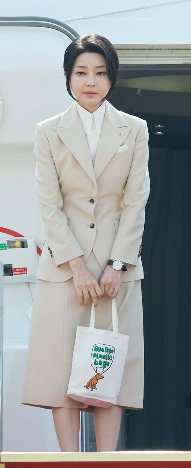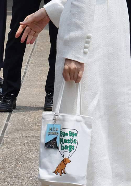 김 여사, 에코백 들고 출국