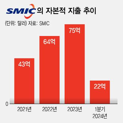 11일 에스엠아이시의 공시 자료를 보면, 회사의 올해 1분기(1~3월) 자본적 지출(capex)은 22억3500만달러(약 3조원)에 이르렀다. 지난해 같은 기간(12억5900만달러)의 두 배에 육박한다. 에스엠아이시는 반도체 혹한기가 덮쳤던 지난해에도 자본적 지출을 전년보다 18%가량 늘린 바 있다. 삼성전자와 대만 티에스엠시(TSMC)가 투자를 줄이거나 현상 유지하고 있는 것과 대비된다. 자본적 지출은 회사가 미래 이윤 창출을 위해 설비 등에 투자한 금액을 일컫는다.