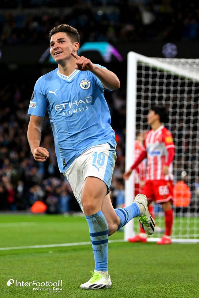 지난 시즌엔 펩 과르디올라 감독이 홀란, 알바레스 공존을 추진하면서 프리미어리그 36경기(선발 31경기)에 나왔다. 11골 9도움을 기록하면서 믿음에 보답했고 유럽축구연맹(UEFA) 챔피언스리그(UCL)에서 7경기(선발 2경기) 5골을 터트렸다. 입지가 나아지긴 했으나 여전히 2순위 공격수인 건 알바레스에게 아쉬운 일이었다.