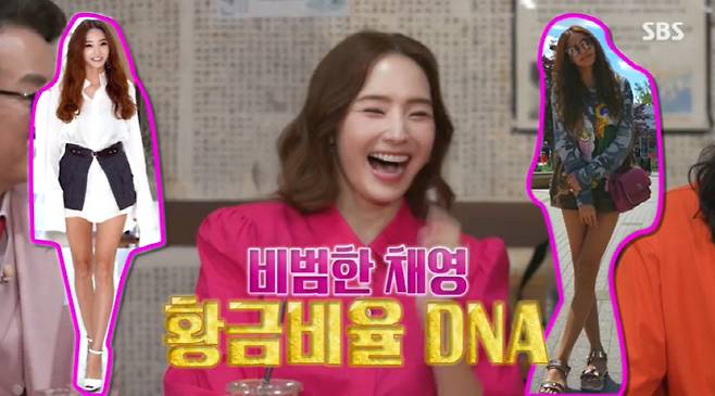 한채영은 "바비인형 황금 DNA를 가지고 있다. 키가 168cm인데 다리 길이만 112cm다"라는 이상민의 멘트에 쑥스러운 듯 미소를 지었다. 이어 "엄마가 저보다 키가 크시다"라며 유전자의 힘을 받았음을 밝혔다.