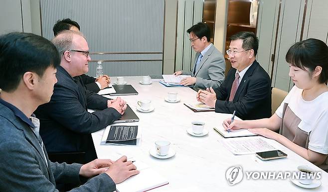 (서울=연합뉴스) 강경성 산업통상자원부 1차관이 12일 서울 중구 웨스틴 조선호텔에서 키스 위텍 텐스토렌트 최고운영책임자(COO)와 면담하고 있다. 2024.6.12 [산업통상자원부 제공. 재판매 및 DB 금지]