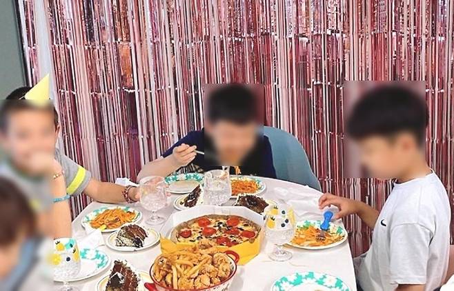 공개된 사진에는 집안에 화려하게 꾸민 생일파티 모습과 함께 생일파티를 즐기는 아들 민수와 친구들의 모습이 담겼다.