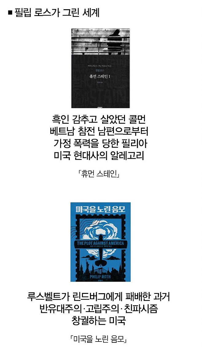 ![필립 로스는 인종차별·빈부격차·전쟁후유증·냉전적 사고 등으로 미국 현대사를 그려냈다.[사진=연합뉴스]](https://img1.daumcdn.net/thumb/R658x0.q70/?fname=https://t1.daumcdn.net/news/202406/12/thescoop1/20240612125126079mmdv.jpg)