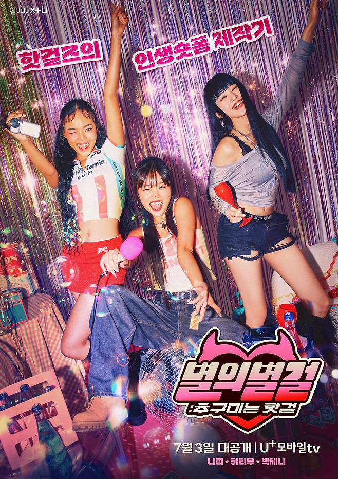 LG유플러스의 'STUDIO X+U'가 제작하는 하이텐션 핫걸리티 '별의별걸: 추구미는 핫걸'이 12일 MZ 핫걸(girl) 나띠X하리무X박제니의 상큼미, 과즙미 터지는 블링블링 메인 포스터를 공개했다.