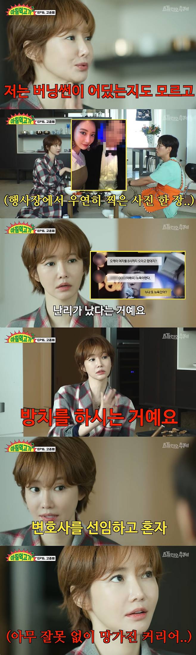 사진 한 장으로 버닝썬 루머가 시작됐다는 고준희는 "그 XX의 XX랑 같은 잡지 캠페인을 했다. 셀카 한 장만 찍어달라 해서 한 장 찍어줬다. 근데 저는 그 친구와 맞팔이 아니어서 그 친구가 인스타에 그 사진을 올린 지 몰랐다. 한참 시간이 지나 버닝썬 사건이 터졌는데 저는 드라마를 찍느라 신경 쓸 수가 없었다. 친구들이 계속 전화가 와서 '그것이 알고 싶다'에서 카톡이 떴는데 그 여배우가 나라더라. 누나라 하니까 나일 거라고 댓글에서 루머가 시작된 거다"라고 밝혔다.