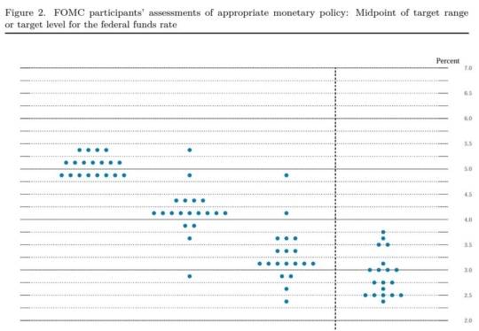 이번 점도표에 따라 연준은 올해 1차례, 내년 4차례의 금리인하할 가능성에 힘이 실렸다. 경제를 자극하지 않는 장기 중립금리는 2.75~3.00%수준으로 지난 3월 전망인 약 2.6%수준보다 다소 높아졌다.