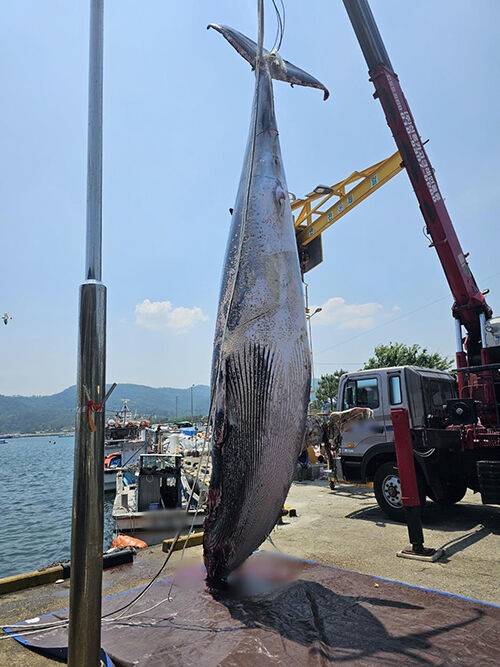 경주서 7.8m 길이 밍크고래 그물에 걸려 죽은 채 발견
