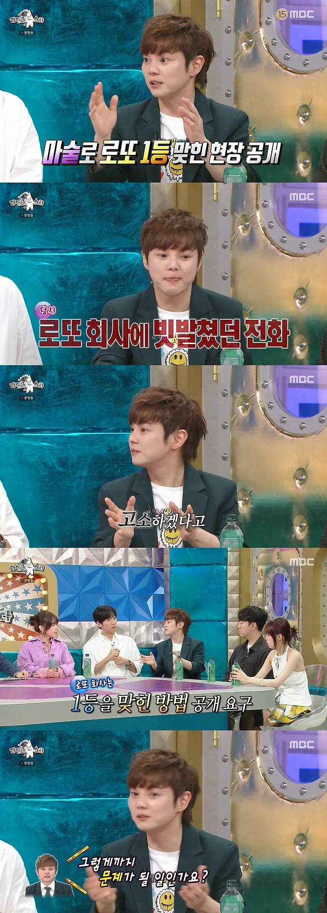 최현우는 "나는 공연 홍보를 위해 로또 1등을 맞혔다. 이게 사실 큰 문제가 될 거라 생각 안 했는데 이후 전화가 미친 듯이 오더라. 안 그래도 말 많은데 번호를 맞히면 어떡하냐며 항의 전화가 왔다. 업무가 안 될 정도로 전화를 받았다. 실제로 로또 회사에서 고소하겠다고 전화가 왔다. 어떻게 1등을 맞혔는지 알려달라고 하는데 알려줄 수가 없었다"고 당시의 상황을 설명했다.