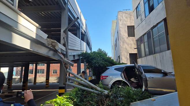 제주도소방안전본부에 따르면 오늘(13일) 오전 7시 20분쯤 제주시 용담동에 있는 한 호텔 주차빌딩 2층에서 제네시스 스포츠유틸리티차량(SUV)이 빌딩 밖으로 추락했습니다.